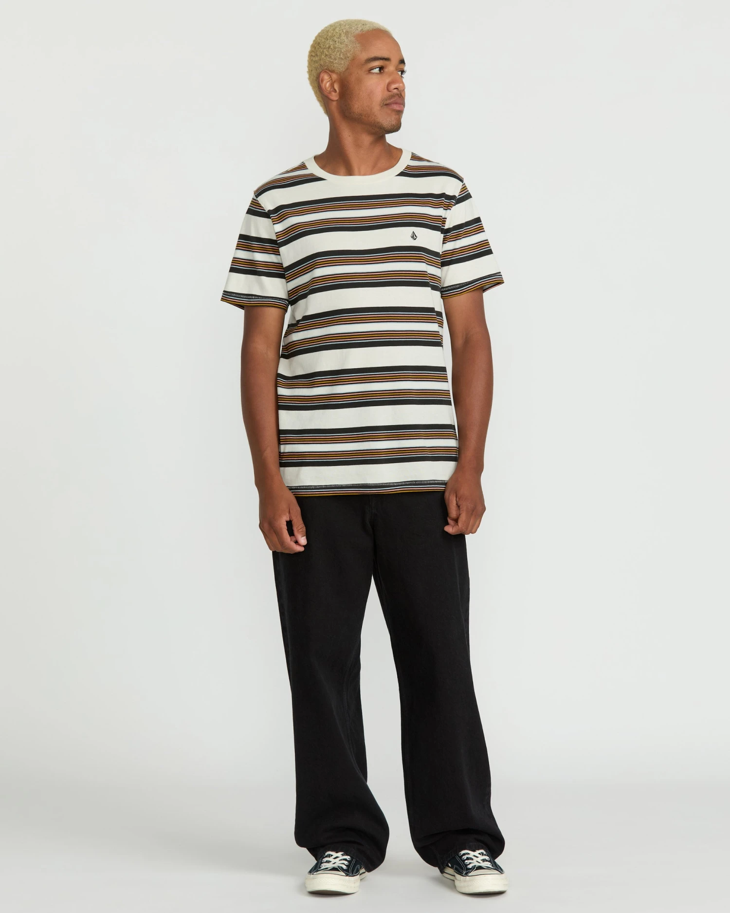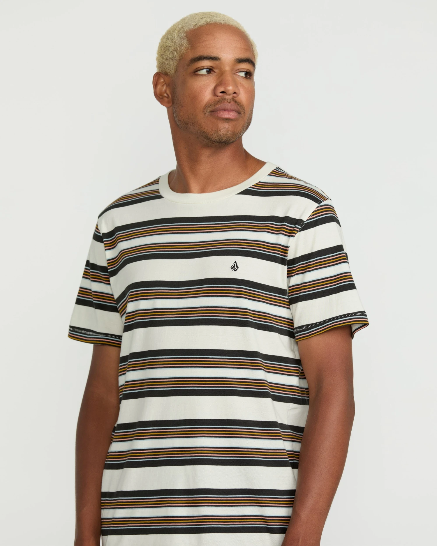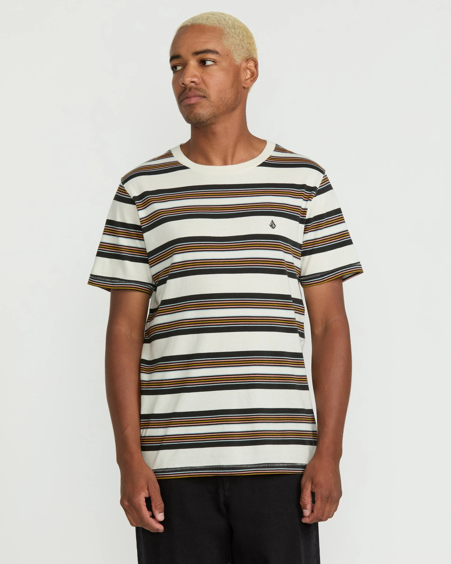 Stay comfortable in this 100% cotton yarn dyed stripe tee, with modern cut, chest logo embroidery, bias neck tape, and laid-back vibes.